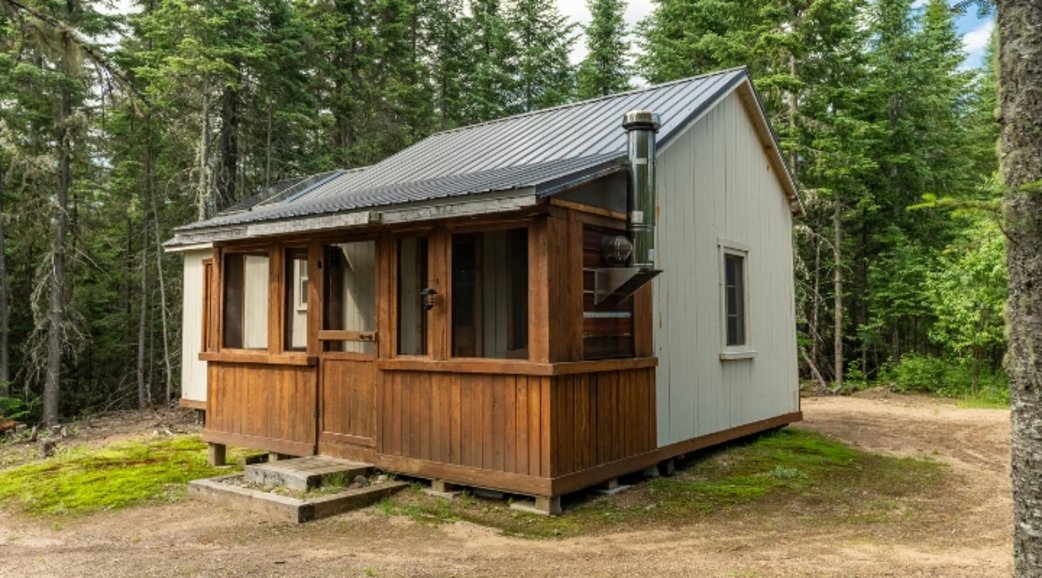 A chalet and a view of the lake
